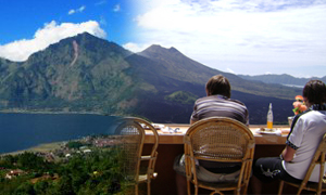 From Kintamani one has a wonderful view of the active volcano Mount Batur and the caldera Lake Batur.